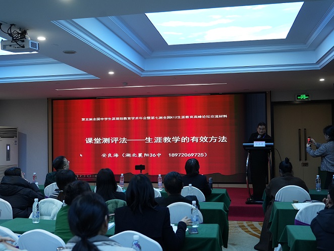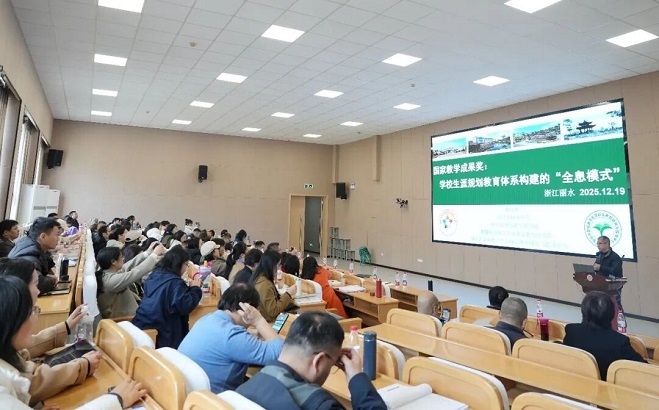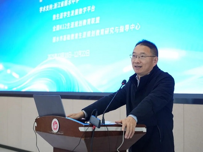 浙江省生涯规划特级教师、丽水市生涯规划教研员梅进德作了题为《国家级教学成果奖:浙江省丽水中学“全息生涯规划教育模式”》的专题报告。他详细解读了该模式的理念框架与实践路径,展现了丽水中学在生涯教育领域的系统性成果与示范价值。