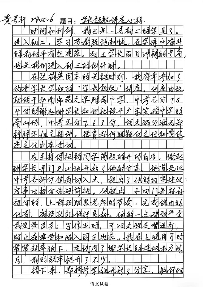 接着出场的郑柠柠学姐不仅中考总分 763 分,更是语文单科满分状元,现就读于省实南山班,是名副其实的全能学霸。