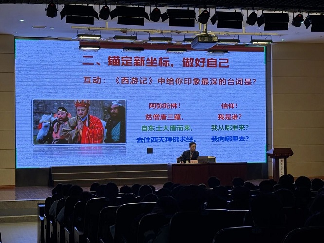 在空间维度,他以《西游记》哲学三问、马斯洛需求理论与“价值、热情、优势”动机三圈模型,带领学生深度自我认知、锚定人生坐标;结合2025年江苏高考数据,剖析物理类、历史类本科上线率及高职院校竞争现状,让学生清晰认识高考竞争格局,明白位次决定选择权的现实意义。