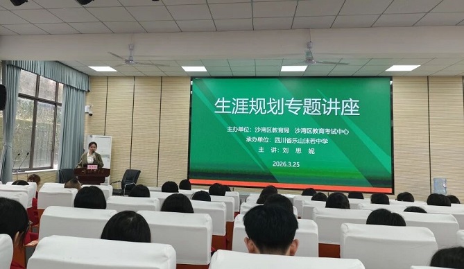 为深入落实立德树人根本任务,提升区域教育工作者生涯规划指导能力,助力学生树立正确的成才观与人生观,3月25日,由区教育局、区教育考试中心主办,乐山沫若中学承办的“新高考改革背景下如何进行中学生生涯规划”专题培训在沫若中学讲学厅举行。活动特邀四川农业大学招生办公室副主任刘思妮担任主讲,来自全区各初中学校、沫若中学及沙湾区高级职业中学的班主任代表及部分高年级学生共200余人参训。