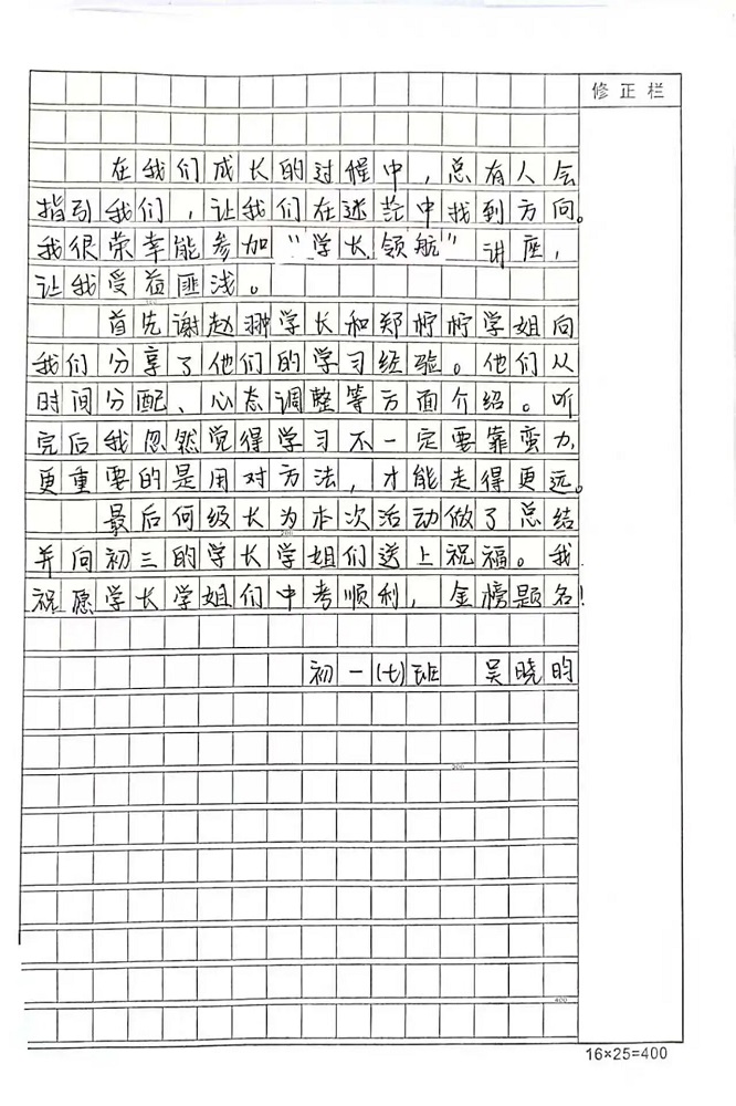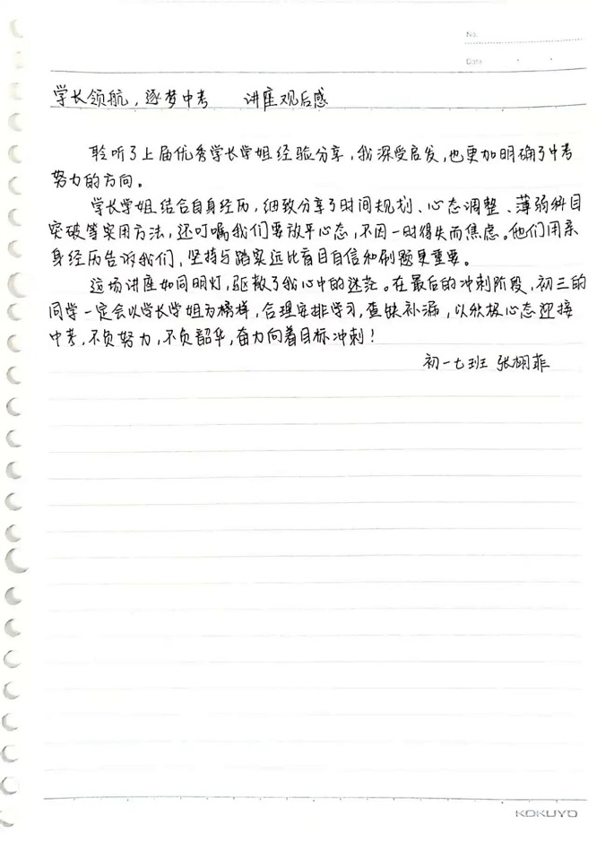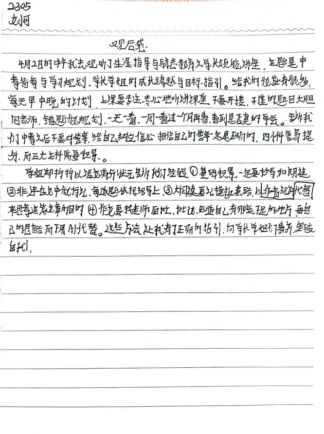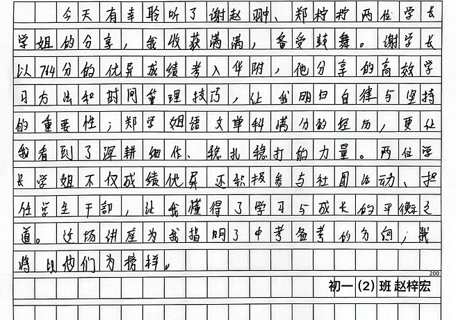 本次“生涯规划指导与励志教育——学长启航”讲座,为初中同学们带来了丰富的学习经验,为大家的学习道路指明了清晰的方向。也祝愿每一位初三学子都能带着这份宝贵的经验与温暖的力量,科学规划、高效学习、稳住心态、全力以赴,在2026年的盛夏,提笔时从容自信,合笔处如愿以偿,不负拼搏的汗水,不负青春的时光,圆梦中考!